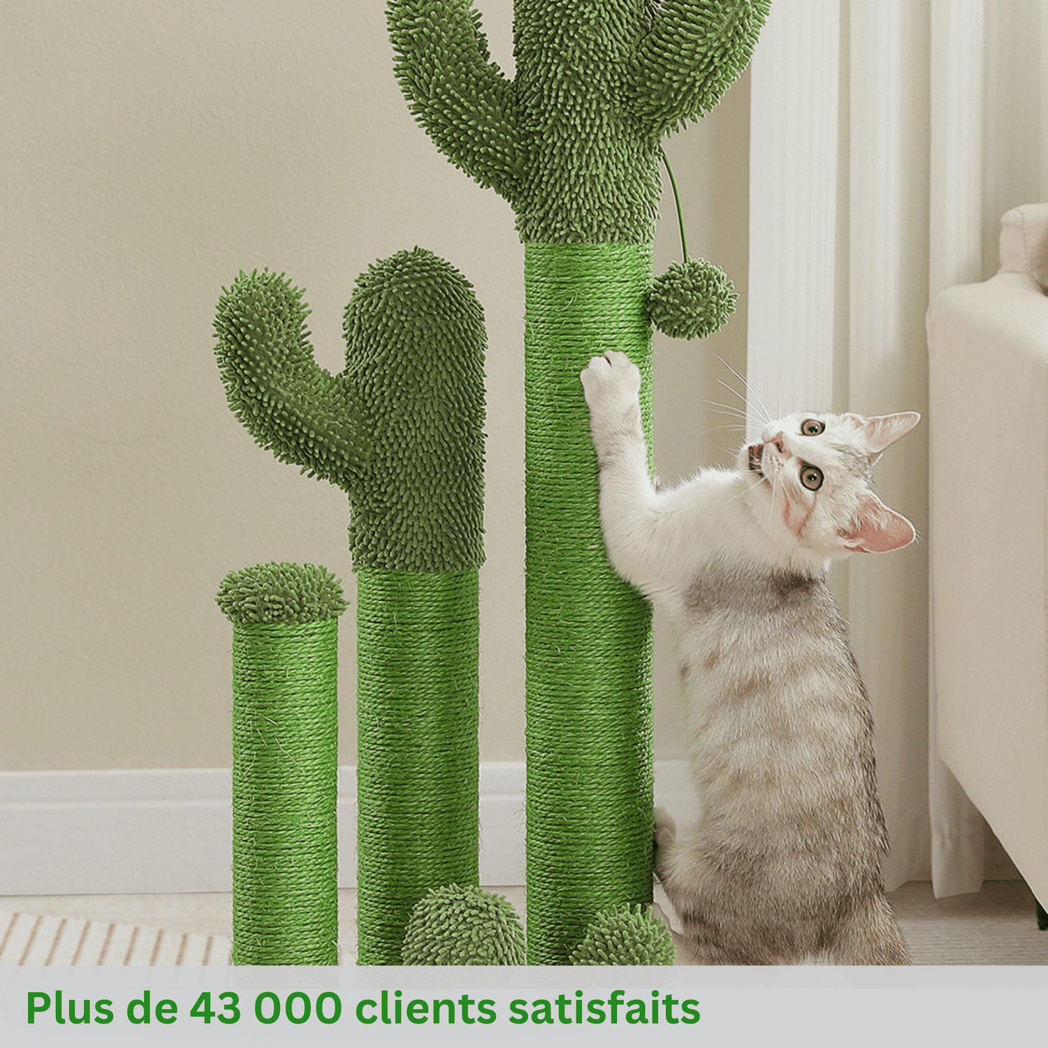 Le Griffoir-Cactus ne se distingue pas seulement des arbres à griffer traditionnels par son apparence, mais aussi par sa qualité robuste qui garantit des années de jeu et de plaisir.